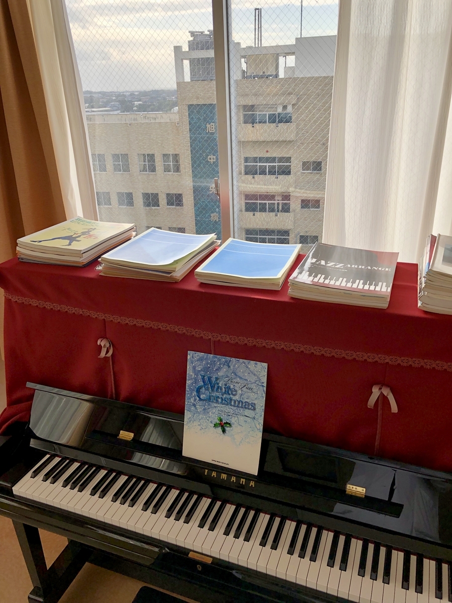 緩和ケア病棟の昼下がり、患者さんやご家族がホッとなさる時間を過ごして頂けるように、少し音量を抑えて、今日もピアノの鍵盤に向かっています。